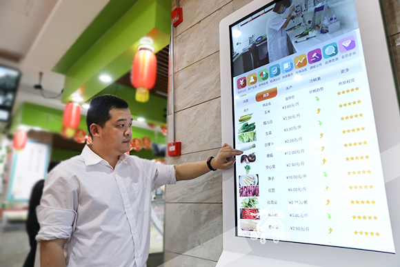 ???公共查詢(xún)觸摸電子屏,可以查詢(xún)自己購買(mǎi)的蔬菜的產(chǎn)地、價(jià)格等信息。華龍網(wǎng)-新重慶客戶(hù)端記者 謝鵬 攝